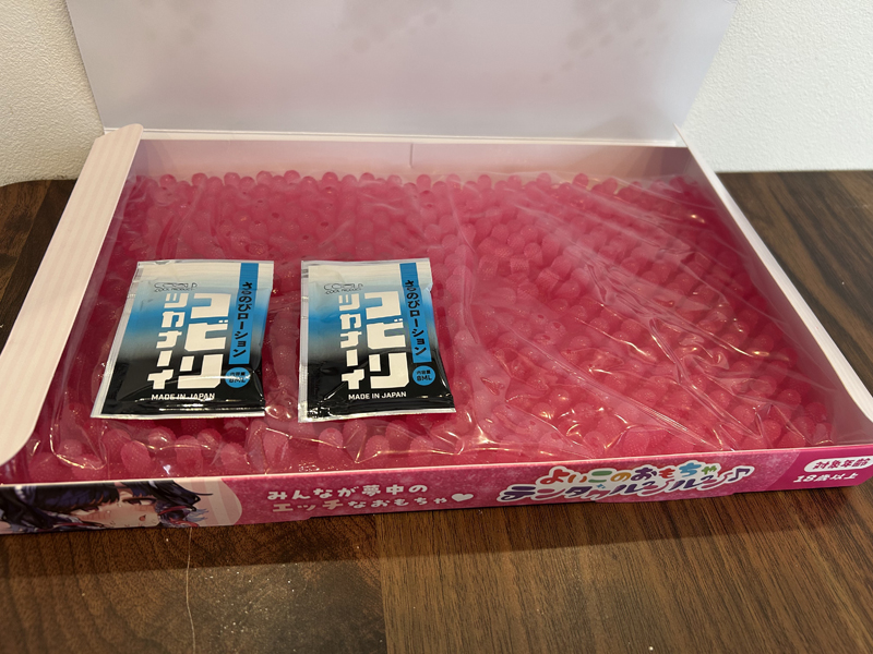 付属のローションを全体的に薄く塗りまずは早速跨り、腰を前後に動かします。おまた全体が柔らかいぷにぷににつつまれる不思議感!既に腰の動きが止まりません。